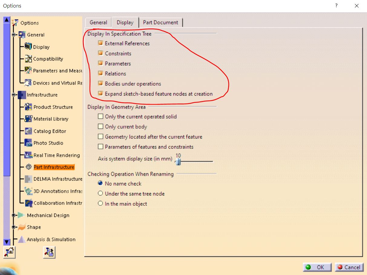 Alors déjà, il faut affiché les Paramètres dans l’arbre Catia ce n’est pas par default: